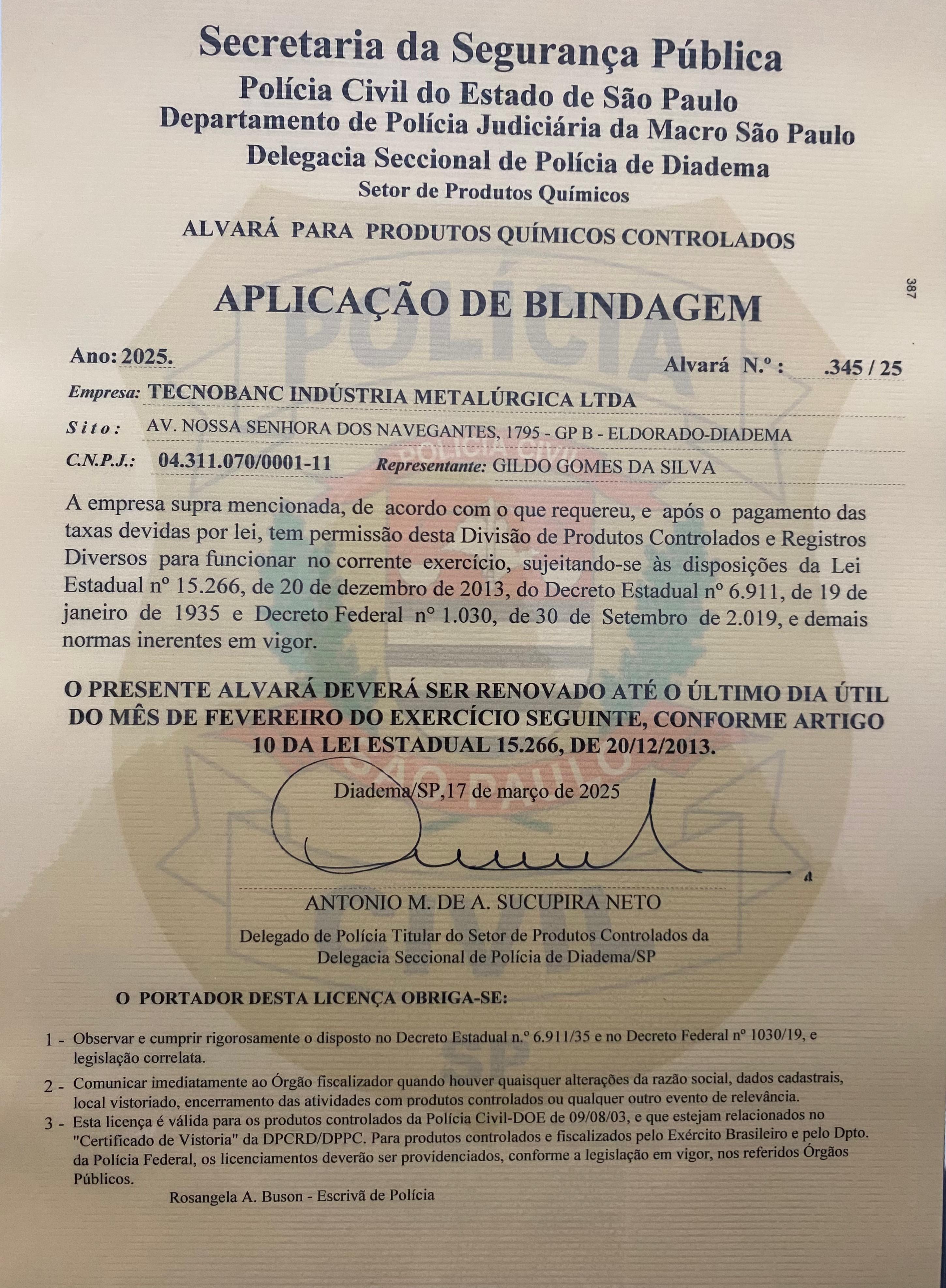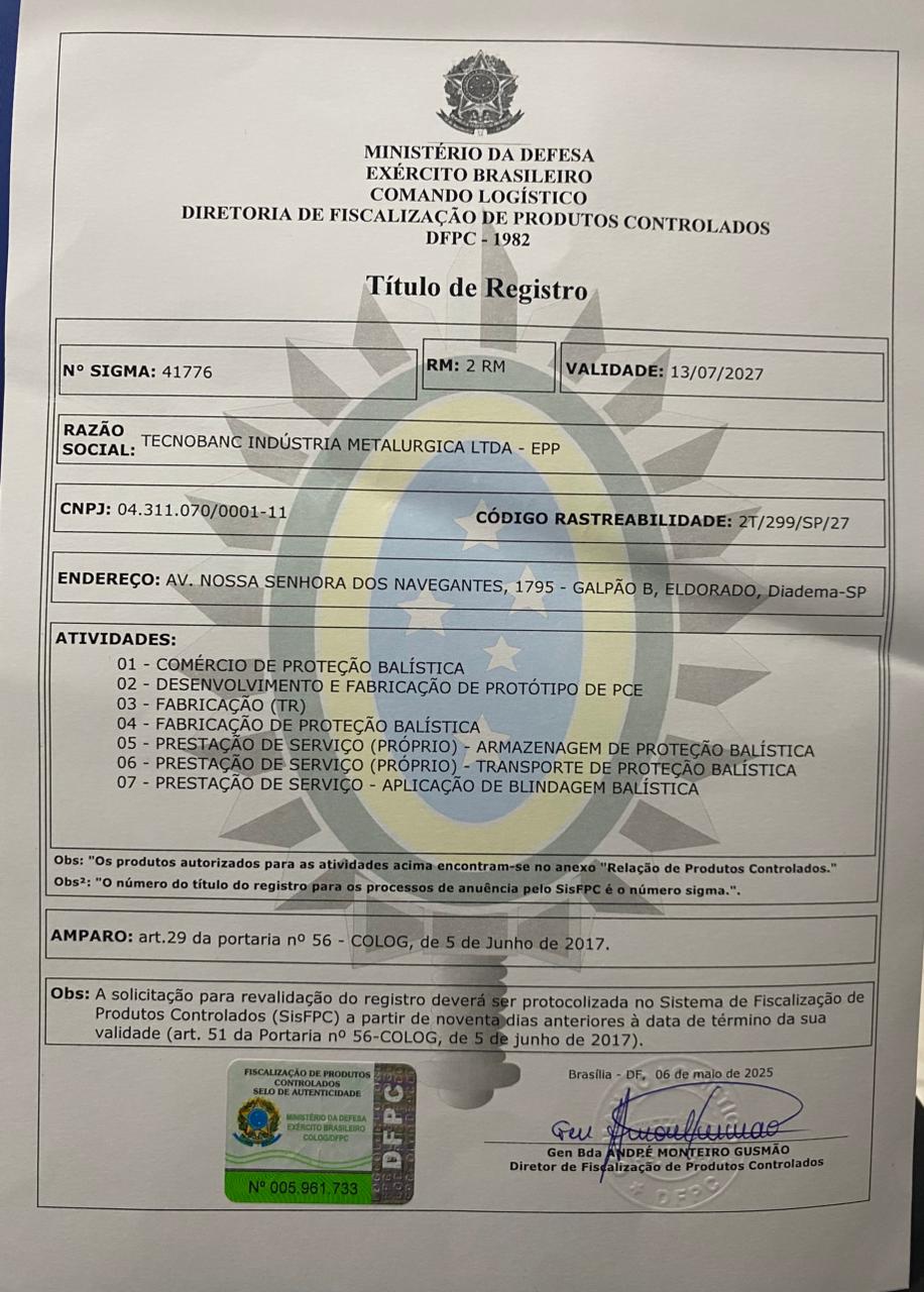 Empresa homologada pelo Exrcito Brasileiro e Polcil Civil